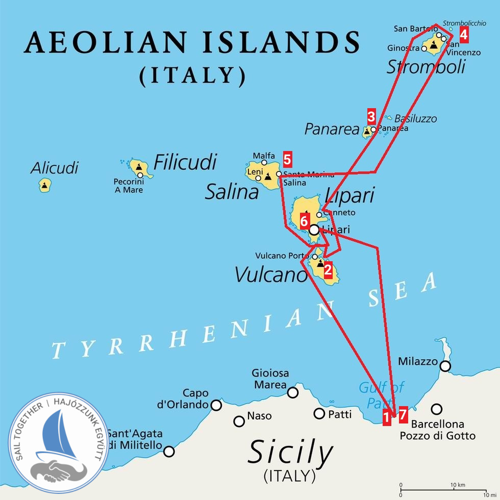 A hajónk Szicília észak-keleti részén fog minket várni, a legnagyobb valószínűséggel Portorosa kikötőjében. Innen indul, és itt ér véget majd a hajózásunk.